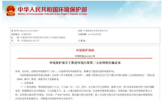環(huán)境保護(hù)部關(guān)于推進(jìn)環(huán)境污染第三方治理的實(shí)施意見