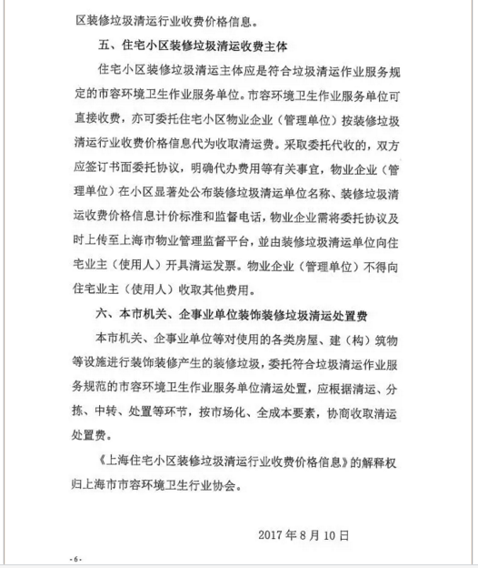 《上海市住宅小區(qū)裝修垃圾清運(yùn)行業(yè)收費(fèi)價格信息》全文內(nèi)容如下: