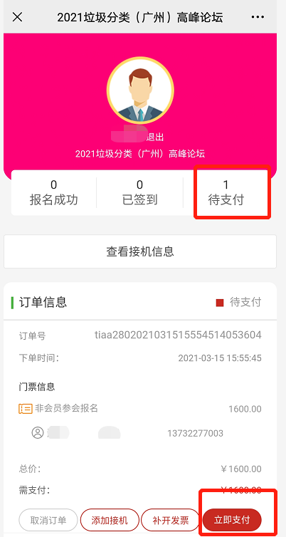 1、參會代表提交報名信息后,可在“個人中心”,點擊“待支付”操作相應(yīng)訂單;