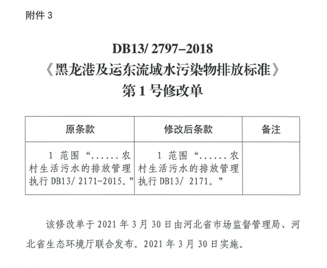 3.DB13/ 2797-2018《黑龍港及運(yùn)東流域水污染物排放標(biāo)準(zhǔn)》第1號(hào)修改單