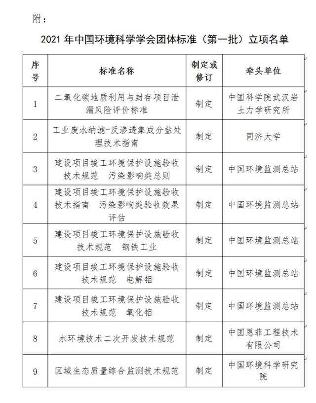 附件:2021年中國(guó)環(huán)境科學(xué)學(xué)會(huì)團(tuán)體標(biāo)準(zhǔn)(第二批)立項(xiàng)名單