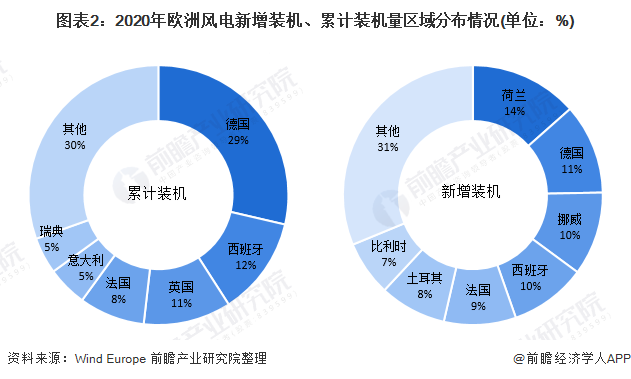 2、2020年德國風(fēng)電裝機規(guī)模最大、荷蘭新增裝機量最多