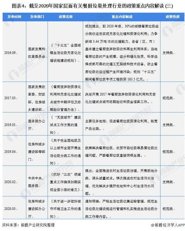 ——國家層面餐廚垃圾處理行業(yè)政策匯總