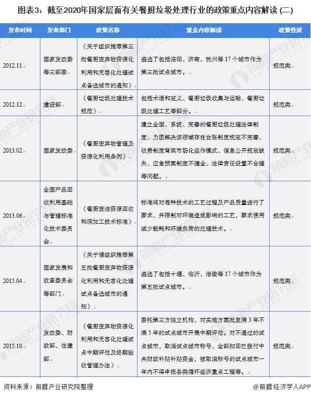 餐廚垃圾處理屬于環(huán)保行業(yè)中的新興業(yè)務領域,正處于起步階段,隨著十二五、十三五規(guī)劃對加強城市生活垃圾治理、建設文明生態(tài)城市的要求,國家層面上各類有關餐廚垃圾收運處理的法規(guī)條例逐漸完善,餐廚垃圾資源化利用和無害化處理也進一步實現(xiàn)了“有法可依、有例可查”。
