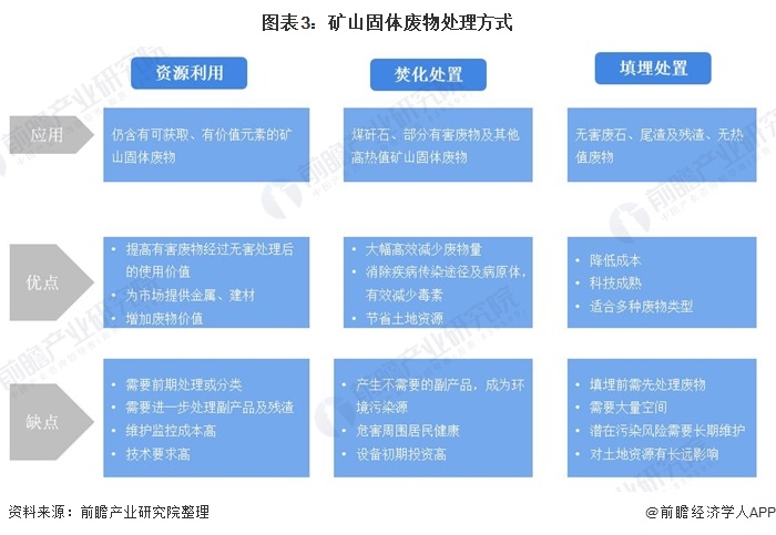 礦山固體廢物處理有三種常見方式,分別為資源利用、焚化處置及填埋處置。