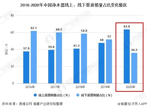 2、中國(guó)凈水器線上銷量超過(guò)線下