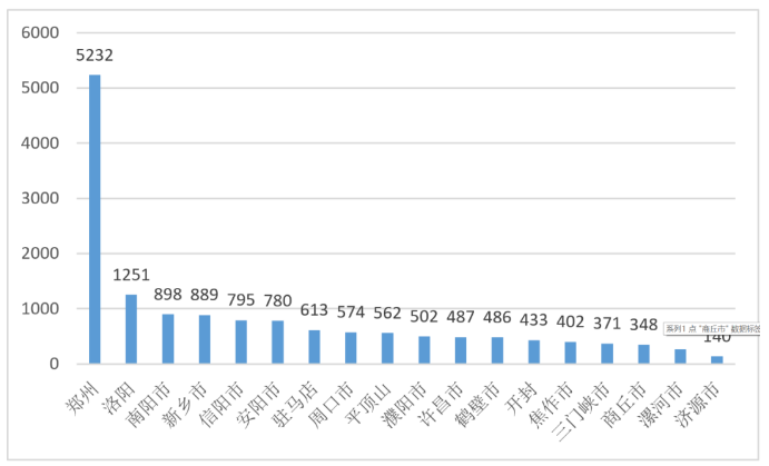 企查查顯示,截至2020年年底,河南省經(jīng)營范圍含環(huán)境治理的企業(yè)共有15028家;18個(gè)市中,排名前五位的城市依次是鄭州5232、洛陽1251、南陽市898、新鄉(xiāng)市889、信陽市795。從這些城市的環(huán)保布局情況,也能看出其主要發(fā)力的點(diǎn)和方向,各地區(qū)環(huán)保相關(guān)企業(yè)具體數(shù)量分布情況,如圖4所示: