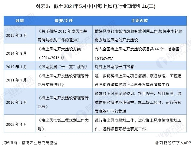 截至2021年5月,我國海上風電相關政策匯總?cè)缦拢?br />
