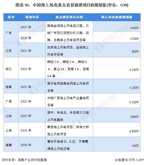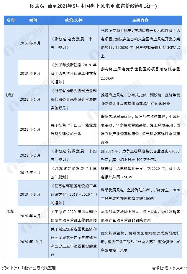 海上風電政策重點省市:江蘇省、廣東省、浙江省等