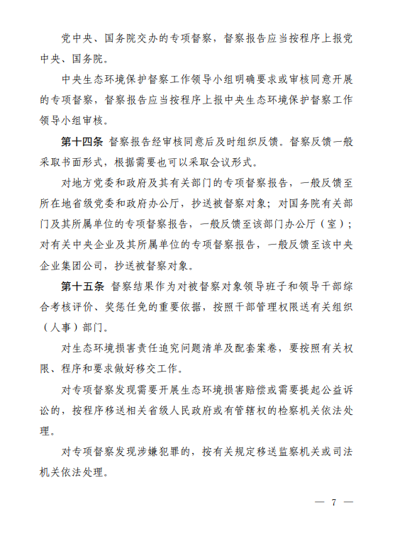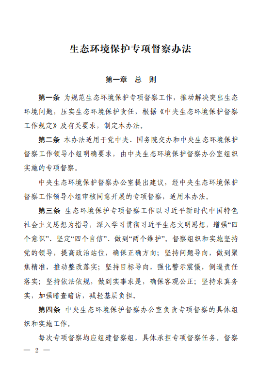 《生態(tài)環(huán)境保護(hù)專(zhuān)項(xiàng)督察辦法》已經(jīng)中央領(lǐng)導(dǎo)同志批準(zhǔn),中央生態(tài)環(huán)境保護(hù)督察工作領(lǐng)導(dǎo)小組第二次會(huì)議審議通過(guò),現(xiàn)印發(fā)給你們,請(qǐng)遵照?qǐng)?zhí)行。