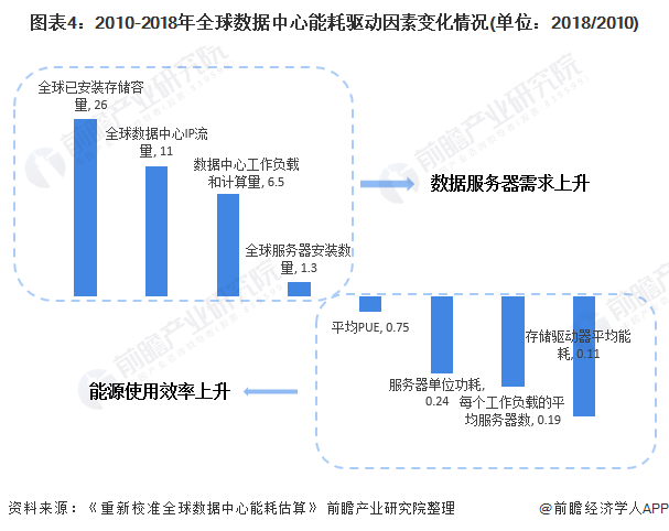 根據(jù)2020年初《Science》刊登的文章《重新校準(zhǔn)全球數(shù)據(jù)中心能耗估算》,數(shù)據(jù)中心總體耗電較高,從單計(jì)算實(shí)例來看,全球數(shù)據(jù)中心能耗強(qiáng)度自2010年以來每年下降20%,能源效率顯著提升。此外,冷卻系統(tǒng)、供配電、服務(wù)器單位功耗和資源池虛擬化技術(shù)的發(fā)展和優(yōu)化,推動PUE值持續(xù)降低,數(shù)據(jù)中心總體能效水平有所提高。