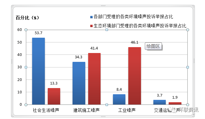 上圖:各類環(huán)境噪聲投訴舉報占比。