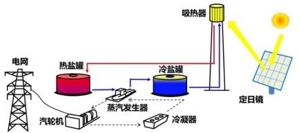 圖3: 塔式太陽能發(fā)電系統(tǒng)原理