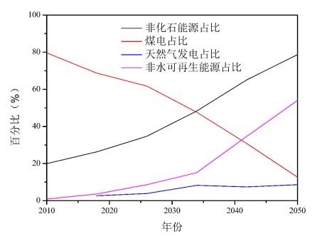 在未來發(fā)電能源結(jié)構(gòu)規(guī)劃中,傳統(tǒng)煤電技術(shù)由于伴隨著大量廢渣和二氧化碳的排放,占比逐年下降(可低于20%),而非化石能源在發(fā)電中的占比會逐漸升高,故研究利用太陽能發(fā)電對未來發(fā)電能源結(jié)構(gòu)的調(diào)整以及碳減排的實現(xiàn)具有舉足輕重的作用。
