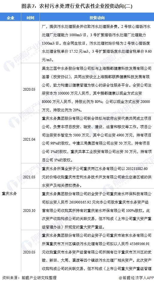 農(nóng)村污水處理行業(yè)代表性企業(yè)最新投資動(dòng)向