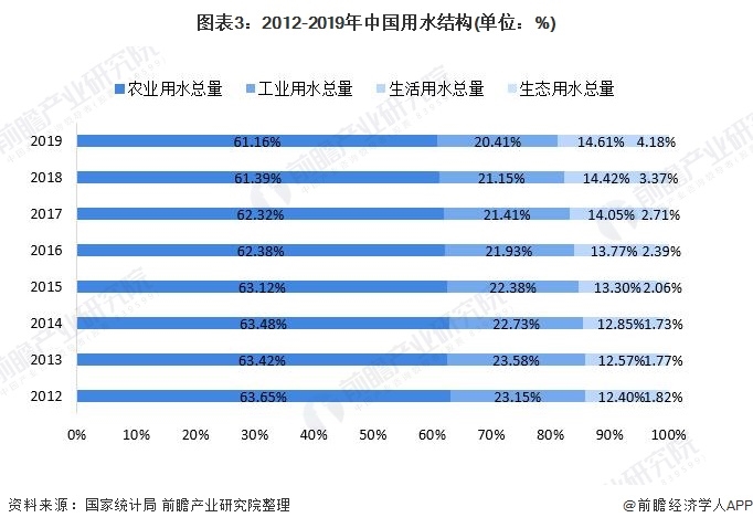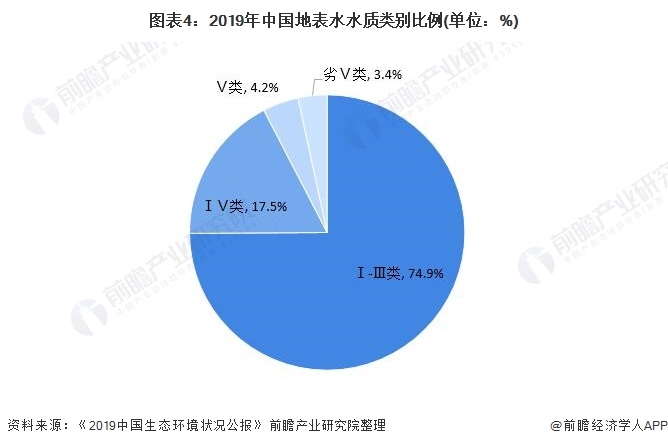 由于,在我國(guó)用水結(jié)構(gòu)中農(nóng)業(yè)用水和工業(yè)用水的占比較大,尤其工業(yè)用水帶來(lái)的污染程度較高,水資源污染問(wèn)題仍是我國(guó)需要解決的問(wèn)題。根據(jù)生態(tài)環(huán)境部發(fā)布的《2019中國(guó)生態(tài)環(huán)境狀況公報(bào)》,2019年全國(guó)地表水仍有3.4%為劣V類(lèi)水體。