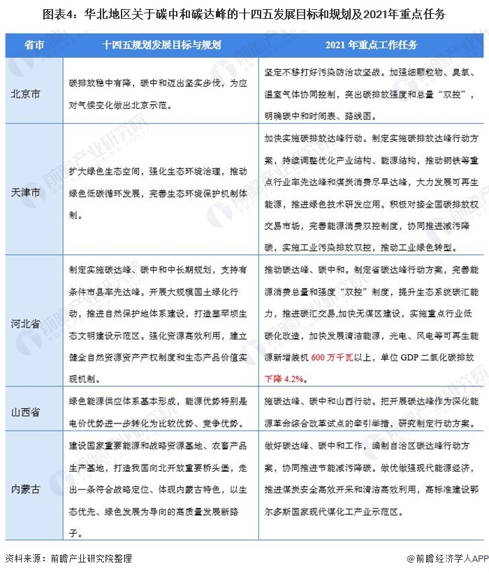 隨著碳中和和碳達(dá)峰任務(wù)目標(biāo)的提出,煤炭又是碳排放的主要能源來源,因此華北地區(qū)成為我國傳統(tǒng)能源產(chǎn)能結(jié)構(gòu)調(diào)整的頭號陣地。華北地區(qū)在碳中和碳達(dá)峰背景下十四發(fā)展的主要目標(biāo)和規(guī)劃和2021年重點任務(wù)是為實現(xiàn)碳達(dá)峰和碳中和加快傳統(tǒng)能源能源結(jié)構(gòu)的的改革,推進(jìn)煤炭安全高效開采和清潔高效利用。