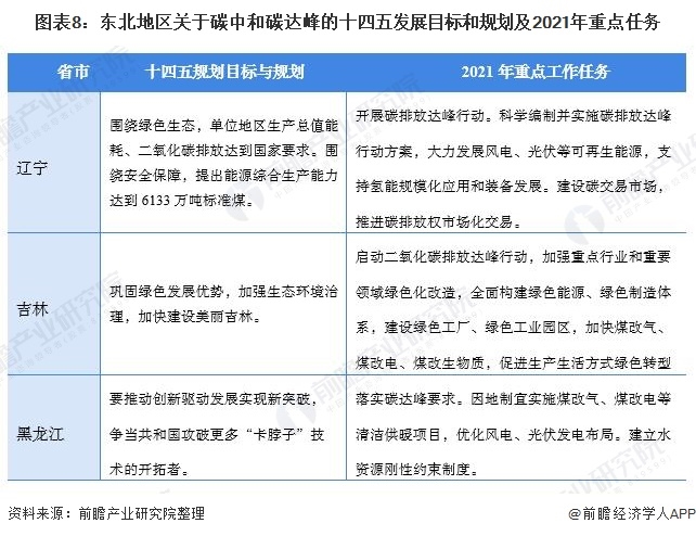 結(jié)合區(qū)域發(fā)展特性,東北地區(qū)各省十四五規(guī)劃目標(biāo)和2021年重點工作任務(wù)中主要以發(fā)展能源替代和建設(shè)綠色工業(yè)園區(qū)為主。