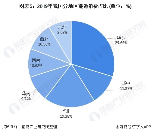 但經(jīng)濟(jì)發(fā)達(dá)的背后意味著高占比的能源消耗,根據(jù)2020年國家能源統(tǒng)計年鑒所披露的相關(guān)信息,我國2019年華東地區(qū)總能源消費占比達(dá)29.69%,是我國七大地區(qū)中能源消費量最多的地區(qū)。