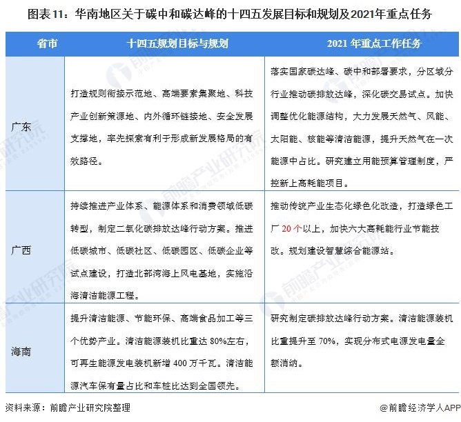 另一方面,華南地區(qū)緊鄰我國南海,海上資源豐富,發(fā)展風(fēng)能、海洋能和太陽能的自然條件優(yōu)越。因此在我國華南地區(qū)十四五發(fā)展目標(biāo)和2021年重點工作任務(wù)中關(guān)于節(jié)能減排的方向主要是利用沿海資源大力推進(jìn)發(fā)展清潔能源,推動傳統(tǒng)產(chǎn)業(yè)生態(tài)化綠色化改造等 。