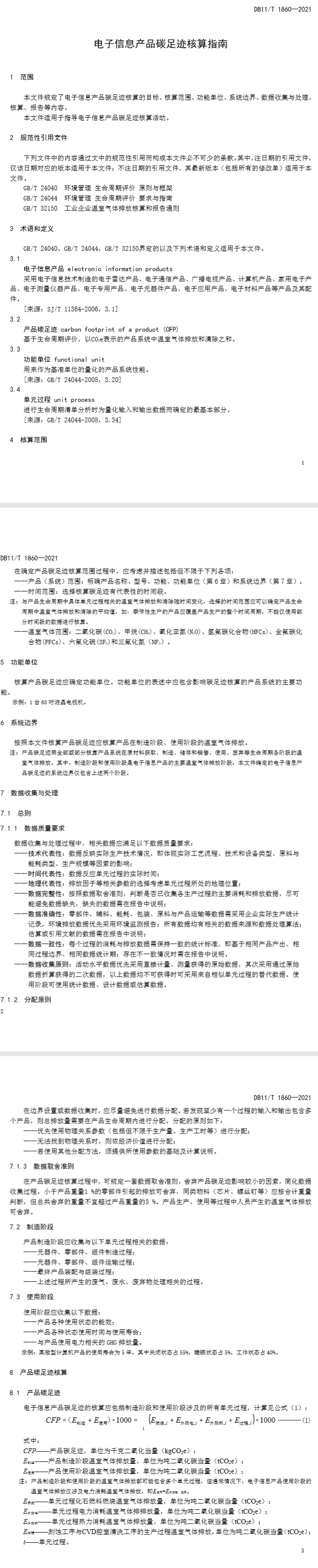 本文件規(guī)定了電子信息產(chǎn)品碳足跡核算的目標、核算范圍、功能單位、系統(tǒng)邊界、數(shù)據(jù)收集與處理、核算、報告等內(nèi)容。