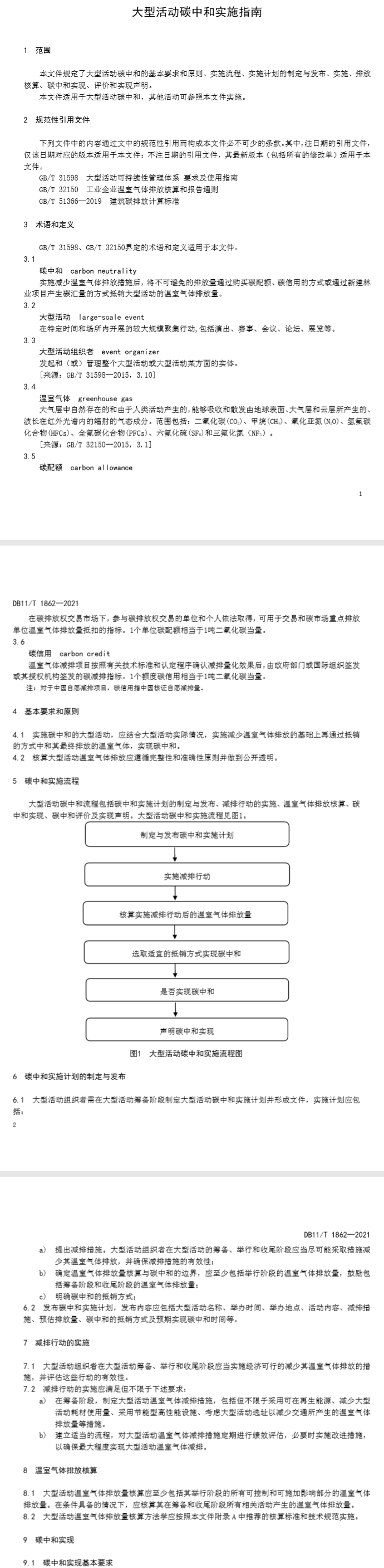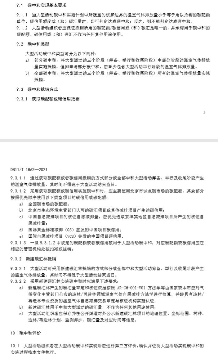 本文件規(guī)定了大型活動碳中和的基本要求和原則、實施流程、實施計劃的制定與發(fā)布、實施、排放核算、碳中和實現、評價和實現聲明。