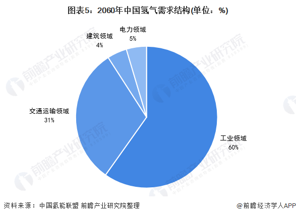 目前,我國主要氫能源主要的應(yīng)用領(lǐng)域為工業(yè)領(lǐng)域。根據(jù)中國氫能聯(lián)盟數(shù)據(jù)顯示,到2060年,工業(yè)領(lǐng)域用氫依舊占?xì)淠茉磻?yīng)用主導(dǎo)地位。