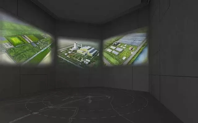 “我們的地球”作為序章,拉開了整個參觀的序幕。進入這一展區(qū),站在不銹鋼金屬線條鑲嵌的上海地圖上,從墻面上以“人與自然”為主題的三折影院打開審視垃圾問題的宏觀視角,影片以自然界生態(tài)平衡角度為切入點,概覽了上海的垃圾問題以及老港的生活垃圾處置情況。影片中也相應地提出了一系列的問題,引發(fā)觀者對于來處理的深度思考,帶著問題去進行后續(xù)的參觀,更可以加深觀眾對于生活垃圾處理的理解。