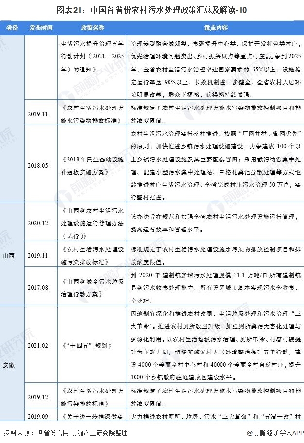 ——31個(gè)省(市、自治區(qū))農(nóng)村污水處理行業(yè)政策匯總