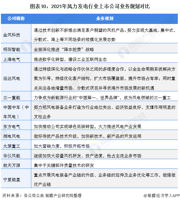 4、風力發(fā)電行業(yè)上市公司業(yè)務規(guī)劃對比