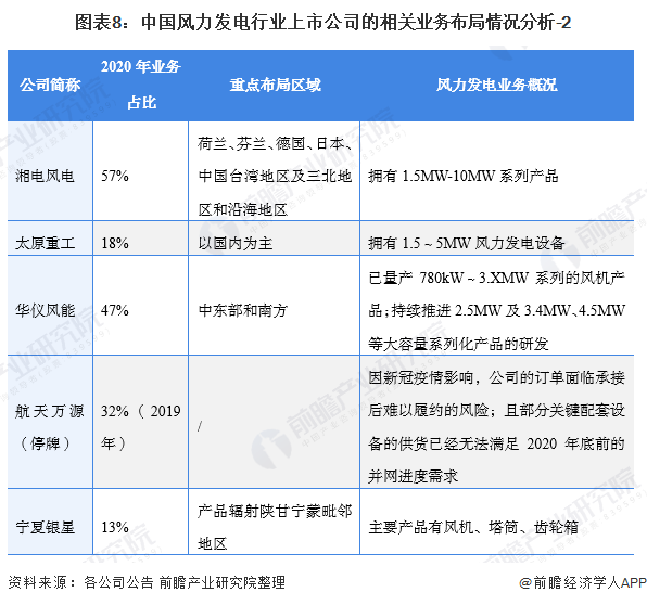 2、 風力發(fā)電行業(yè)上市公司業(yè)務布局對比