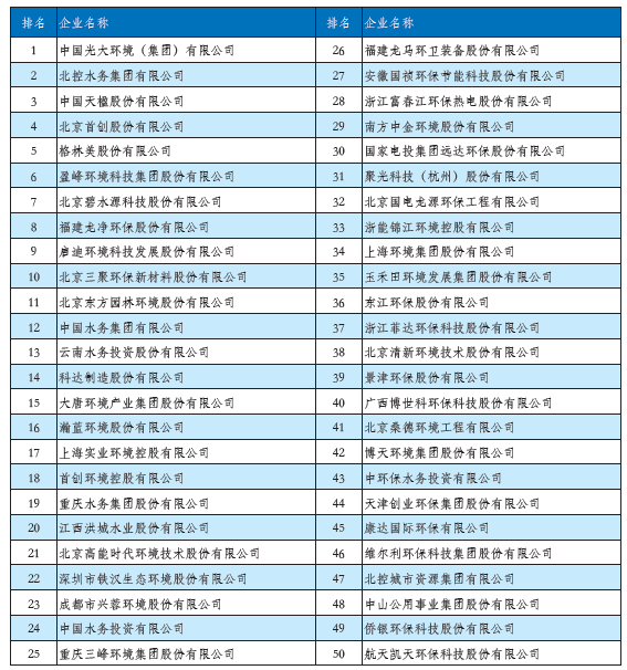2020中國(guó)環(huán)境企業(yè)50強(qiáng)榜單