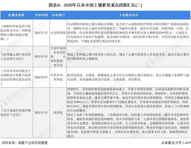 原標題:預(yù)見2021:《2021年中國土壤修復行業(yè)全景圖譜》(附市場現(xiàn)狀、競爭格局和發(fā)展趨勢等)