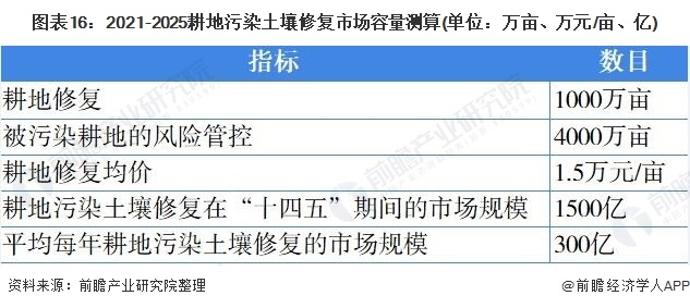 1、耕地土壤修復市場空間“十四五”期間將達到1500億元