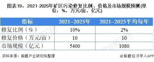 2021-2025年,我國污染礦區(qū)修復比例累計按照10%,修復價格按照10萬元/畝計算,市場規(guī)模約為6480億元,平均每年達到1080億元。