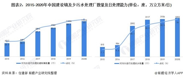 事實上,雖然國家近年來積極推動農(nóng)村污水處理,但是“十三五”時期我國農(nóng)村污水處理并未達(dá)到規(guī)劃目標(biāo)。前瞻初步估計,截止2020年底,我國建設(shè)鎮(zhèn)及鄉(xiāng)污水處理廠數(shù)量分別為11970座和1952座;我國建設(shè)鎮(zhèn)及鄉(xiāng)污水日處理能力分別達(dá)到了2753萬立方米/日和115萬立方米/日。