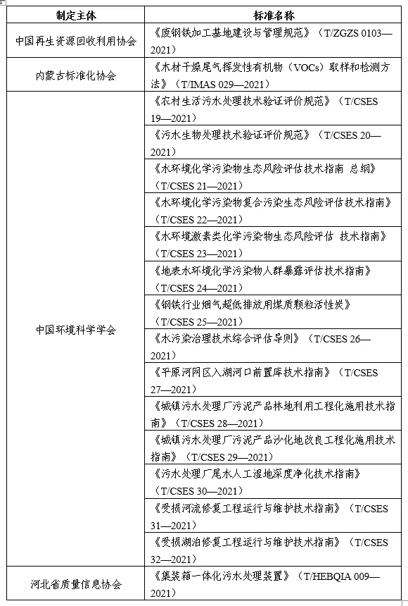 表:7月生態(tài)保護和環(huán)境治理類團體標準名錄