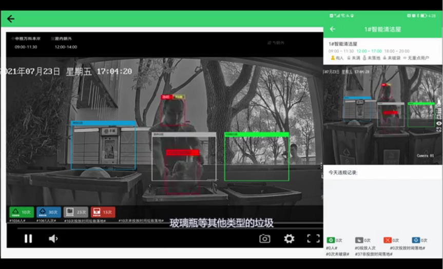 AI云上督導(dǎo)智能體系可以安裝到任意普通垃圾房?jī)?nèi),通過(guò)AI身份識(shí)別攝像頭,可以精準(zhǔn)識(shí)別垃圾種類、質(zhì)量、數(shù)量,時(shí)間等投放信息,確保分類質(zhì)量。同時(shí),利用監(jiān)控?cái)z像頭信息化后臺(tái)連接還可進(jìn)行遠(yuǎn)程語(yǔ)音督導(dǎo),一個(gè)督導(dǎo)員可管理多個(gè)投放點(diǎn),有效降低人工成本,減少違規(guī)投放行為,提高分類質(zhì)量。