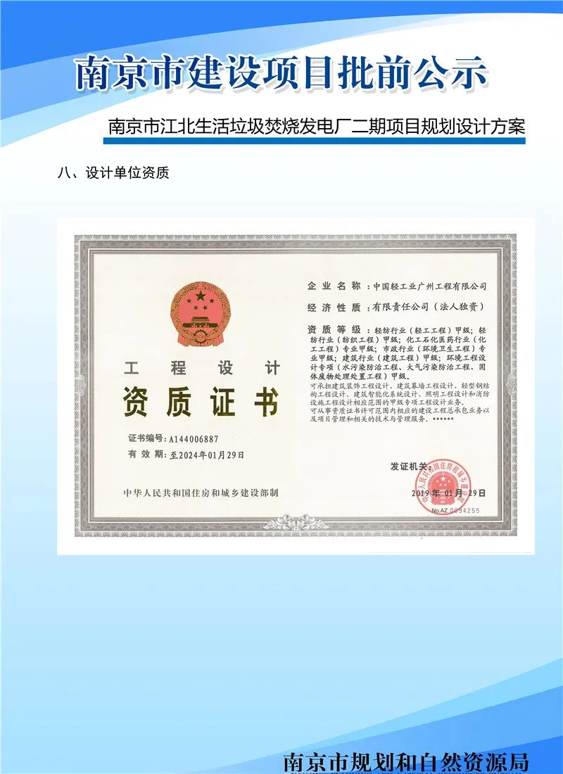 該項目的建設單位為南京江北環(huán)保電力有限公司,設計單位為中國輕工業(yè)廣州工程有限公司。