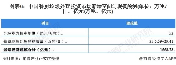 3、中國餐廚垃圾處理投資市場新增空間達(dá)到1558.73億元