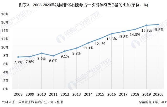 從我國(guó)對(duì)能源的依存情況來看,化石能源仍是主要消費(fèi)對(duì)象。統(tǒng)計(jì)數(shù)據(jù)顯示,2008-2013年,非化石能源(水電、風(fēng)電、太陽(yáng)能、生物質(zhì)能等)占一次能源消費(fèi)總量的比重均低于10%,之后該比重持續(xù)上升,至2019年該比重達(dá)到15.3%。未來,當(dāng)經(jīng)濟(jì)增速逐漸提高時(shí),化石能源的消費(fèi)還會(huì)大幅增長(zhǎng),非化石能源的占比可能還會(huì)面臨下降的風(fēng)險(xiǎn)。