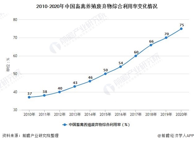 4、2020年中國畜禽養(yǎng)殖廢棄物綜合利用率達(dá)到75%