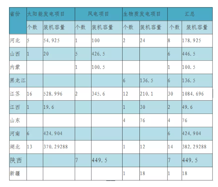 以下為本次公布的集中式可再生能源發(fā)電項(xiàng)目詳情: