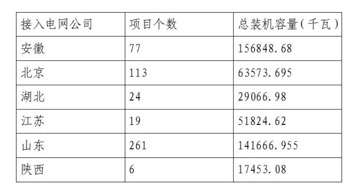 此次公布的非自然人分布式可再生能源發(fā)電并網(wǎng)項(xiàng)目共涉及499個(gè)光伏發(fā)電項(xiàng)目,總裝機(jī)容量457434.01千瓦;1個(gè)生物質(zhì)發(fā)電項(xiàng)目,總裝機(jī)容量3000千瓦;接入電網(wǎng)為國(guó)網(wǎng)安徽省電力有限公司、國(guó)網(wǎng)北京市電力有限公司、國(guó)網(wǎng)湖北省電力公司、國(guó)網(wǎng)江蘇省電力有限公司、國(guó)網(wǎng)山東省電力公司、國(guó)網(wǎng)陜西省電力公司。