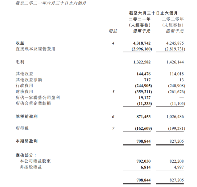 2021年上半年,公司收益為港幣43.18億元,較去年同期增長2%,除利息、稅項、折舊及攤銷前盈利為港幣15.91億元,較去年同期增長2%本公司權益股東應占盈利為港幣70.2億元,較去年同期減少15%。