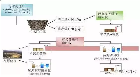 經(jīng)過十多年的修訂,德國污水處理廠污泥法(AbfKl?rV)在2017年8月正式宣布生效。新版規(guī)范明確規(guī)定, 在規(guī)定的過渡期(12年或15年)之后,所有規(guī)模超過5萬人口當(dāng)量的污水廠都必須從污泥或者污泥灰燼內(nèi)進(jìn)行磷回收,同時(shí)禁止污泥土地利用。