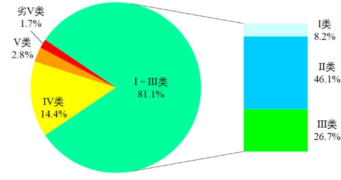 圖1 7月全國地表水水質(zhì)類別比例