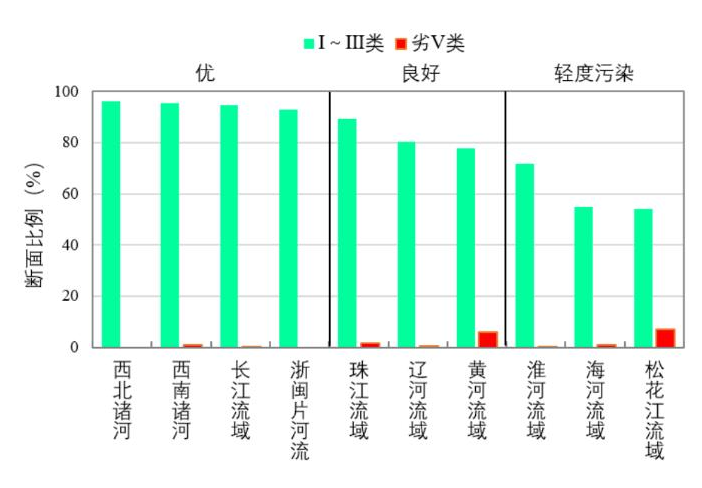 1-7月,長江、黃河、珠江、松花江、淮河、海河、遼河等七大流域及西北諸河、西南諸河和浙閩片河流水質(zhì)優(yōu)良(Ⅰ~Ⅲ類)斷面比例為82.8%,同比上升0.4個百分點;劣Ⅴ類斷面比例為1.5%,同比下降0.9個百分點。主要污染指標為化學(xué)需氧量、高錳酸鹽指數(shù)和五日生化需氧量。其中,西北和西南諸河、長江流域和浙閩片河流水質(zhì)為優(yōu);珠江、遼河和黃河流域水質(zhì)良好;淮河、海河和松花江流域為輕度污染。
