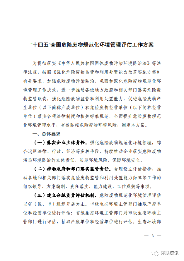 關(guān)于印發(fā)《“十四五”全國危險廢物規(guī)范化環(huán)境管理評估工作方案》的通知各省、自治區(qū)、直轄市生態(tài)環(huán)境廳(局),新疆生產(chǎn)建設(shè)兵團生態(tài)環(huán)境局: