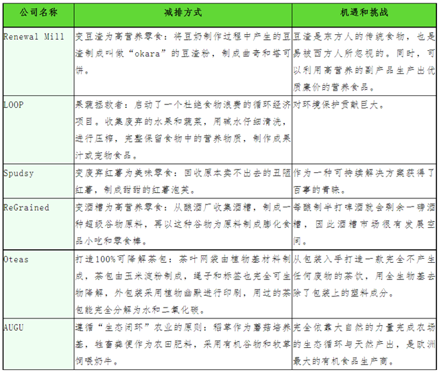 在企業(yè)踐行循環(huán)經(jīng)濟(jì)理念方面,企業(yè)通過產(chǎn)業(yè)鏈互補(bǔ)和結(jié)合等合作方式,通過利用副產(chǎn)物制造有價(jià)值的食品,減少生產(chǎn)消耗。例如,Renewal Mill公司將豆奶制作過程中產(chǎn)生的豆渣制成叫做“okara”的豆渣粉,制成曲奇和塔可餅。除此以外,ReGrained公司從釀酒廠收集酒糟,制成一種超級(jí)谷物原料,再以這種谷物為原料制成膨化食品小吃和零食棒。食品循環(huán)經(jīng)濟(jì)發(fā)展有助于充分實(shí)現(xiàn)食品價(jià)值,但是在食品生產(chǎn)過程中,可利用的副產(chǎn)物價(jià)值有限,且其經(jīng)濟(jì)回報(bào)有待考究。